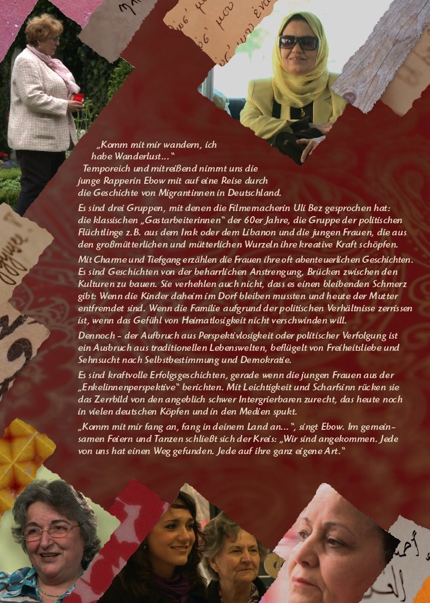 Mit Charme und Tiefgang erzählen 15 Frauen aus unterschiedlichen Nationen ihre Einwanderungsgeschichten, mitreißend untermalt vom Rap "Wanderlust" der Münchner Szenemusikerin EBOW. Ob Flucht, Vertreibung, Arbeitssuche oder einfach die Lust auf etwas Neues: Die Gründe, die Frauen aus verschiedenen Nationen nach Deutschland führen, sind unterschiedlich.  Der Aufbruch aus Krieg, Armut oder politischer Verfolgung ist für viele auch ein Ausbruch aus traditionellen Lebenswelten, beflügelt von Freiheitsliebe und Sehnsucht nach Selbstbestimmung und Demokratie.